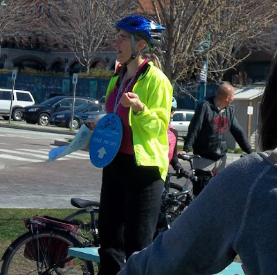 My husband and I showed up five minutes late, just in time to catch the first wave leaving the start from Maglianero. Our leader wore the old Cycle the City sign around her neck, which couldn't have been too comfortable.